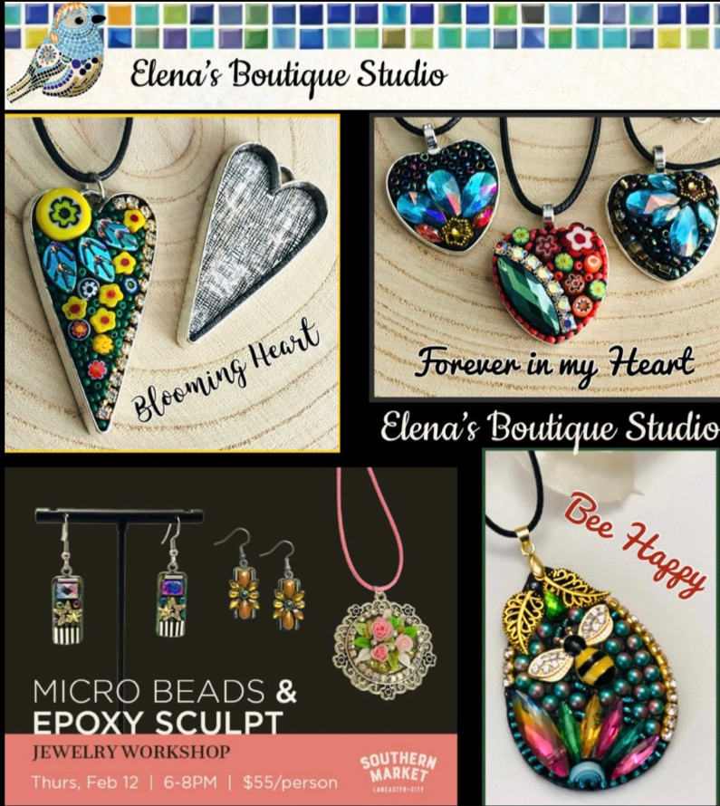 Get ready to unleash your creativity with our Micro Beads & Epoxy Sculpt Jewelry Workshop! In this class, you’ll design and make unique jewelry for any occasion with professional artist Elena Neff. Choose to create two pendants, a pendant with matching earrings, or a pendant with a ring. Select from a variety of metal bezels in different shapes, colors, and sizes (ranging from 1” to 2”), along with a matching cord.